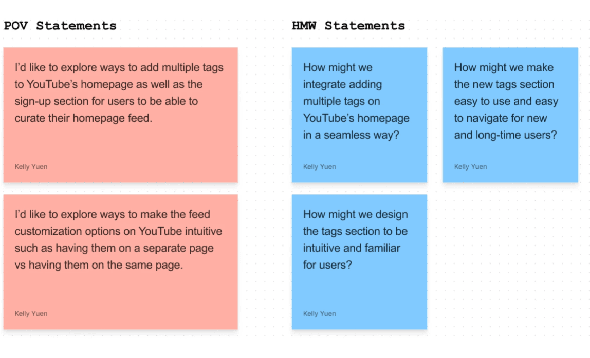 Using POV and HMW statements I was able to narrow my focus on what designs to create and test.