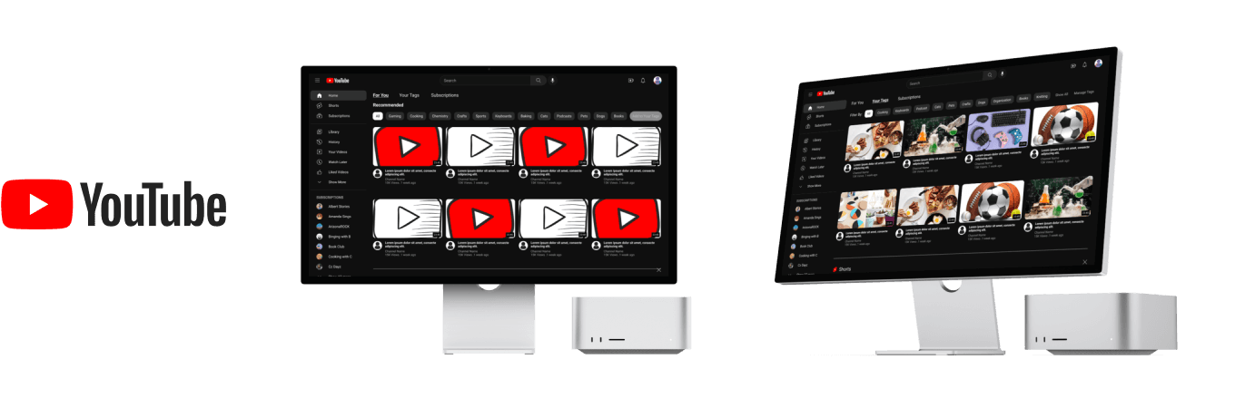 In a separate section on the homepage, you are recommended videos from the tags you added. This is separate from the ones just recommended by YouTube (this would be if the tags section is on a different page on the homepage area for example there would be a “For you” and a “Your tags” area) : To create a separation from the usual Homepage while the new page functions the same. This gives the user the option to use or not use the new feature.